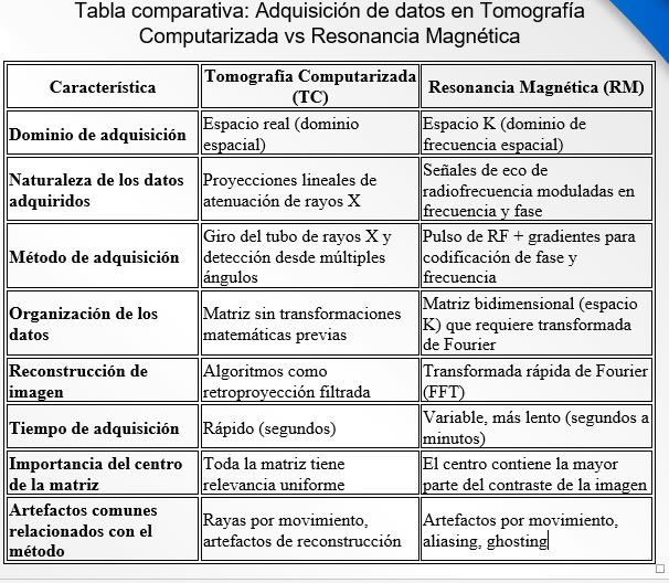 El entendimiento del llenado del espacio K en resonancia magnética es esencial para optimizar la calidad de imagen, reducir artefactos y seleccionar secuencias adecuadas. Comparado con la tomografía computarizada, donde los datos se adquieren directamente en el dominio espacial, la resonancia magnética requiere un complejo proceso de codificación y reconstrucción. Este conocimiento no solo enriquece la práctica de los profesionales de la imagen médica, sino que también mejora la seguridad y precisión diagnóstica en beneficio del paciente.